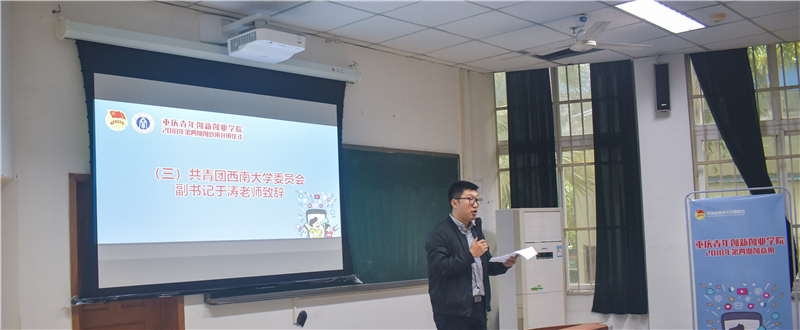 校团委副书记于涛讲话,他介绍了学校共青团的相关工作,希望同学们能够强化知识储备,提升综合能力,锤炼意志品德。