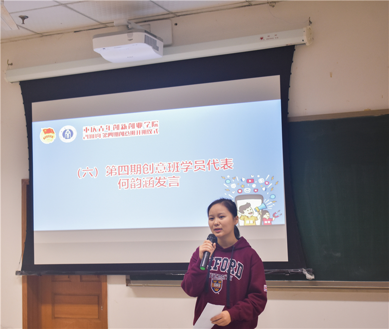 创意班班主任范志刚宣读了本次创意班的管理规定,强调了课堂纪律和考勤要求。学员代表何韵涵同学分享了她对未来的期许、对人生价值的追求以及通过本次培训希望得到的收获。