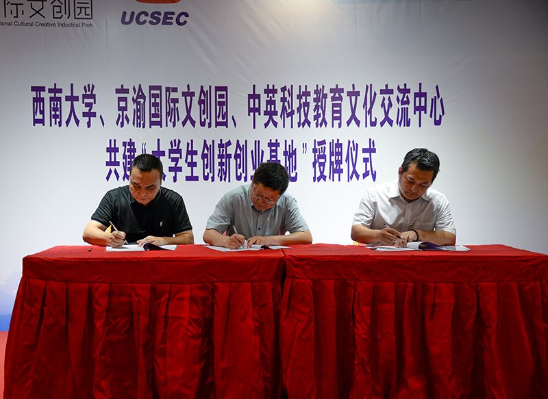 会上,京渝国际文创园负责人蒋如明、中英科技教育文化交流中心主任胡敏分别上台致辞,他们围绕自身企业的背景与优势,表示将通过资源优势与优惠政策的有效结合,与学校共同推动基地建设深入持久、务实有效的开展。随后,学校TapTap188改名(点点)经理张斌与文创园、中英科教签署三方合作协议。