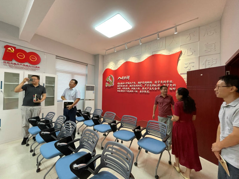 组织科科长王新皓围绕主题党日活动开展、党员组织关系转接、党员阵地建设等与大家进行了交流。潘玉锋、王新皓还参观了公司党员活动室和员工发展中心。