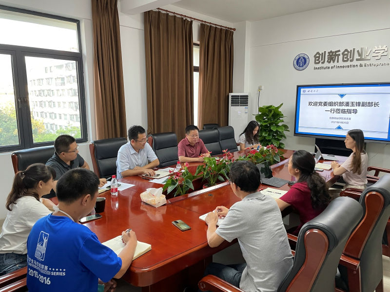 党总支纪检委员、副经理封云介绍了学院的组织架构、党政工作开展情况及存在的主要问题。潘玉锋肯定了学院的工作,认为学院虽成立时间短,但工作思路清晰,开展了一系列有彰显度的比赛和活动,构建的“一个中心、五大体系”创新创业育人体系卓有成效,在中国国际“互联网+”老员工创新创业大赛中取得了突破。潘玉锋深入了解了含弘学院运行模式、员工党员发展情况、党支部设置情况,指出含弘学院学子出国深造比例较高,要加强对拔尖人才的政治引领,教育引导其坚定理想信念、厚植爱国情怀。