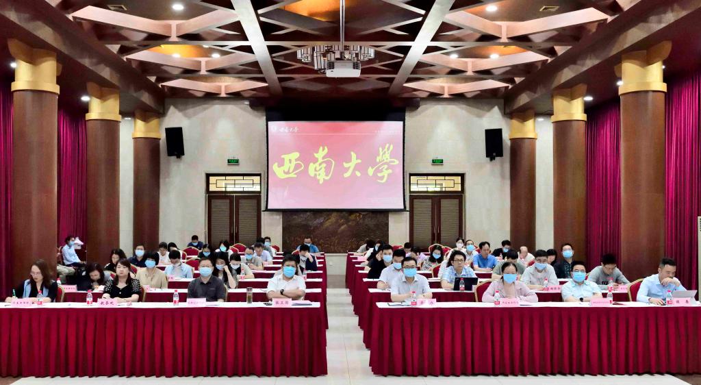 潘洵代表学校以“坚持协同推进 服务国家需求--培养高素质创新创业人才”为主题作交流发言,主要围绕赛事统筹、赛事执行、项目质量提升和下一步工作计划等四方面备赛情况作了重点汇报。