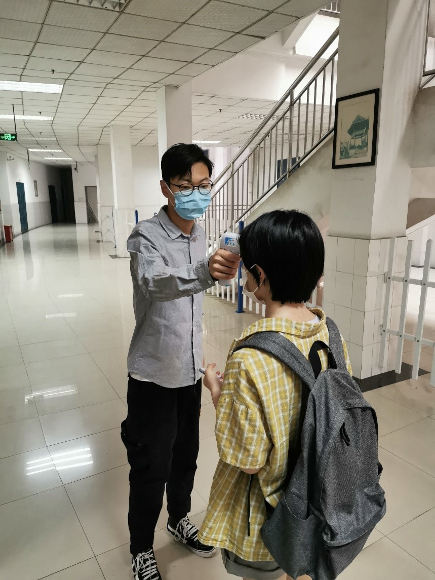 TapTap188改名(点点)员工党支部10名在校毕业生党员踊跃参与志愿服务,结合线下授课情况进行合理分组,在上课前对每位进入教室的2019级同学及老师测温,进行为期一周半的常态化检查,确保每位同学的健康状况,为2019级线下教学保驾护航。