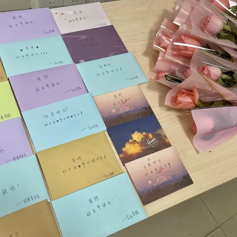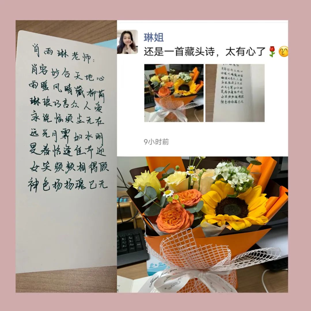 (含弘学院辅导员肖雨琳老师在收到鲜花和贺卡后表示十分惊喜,