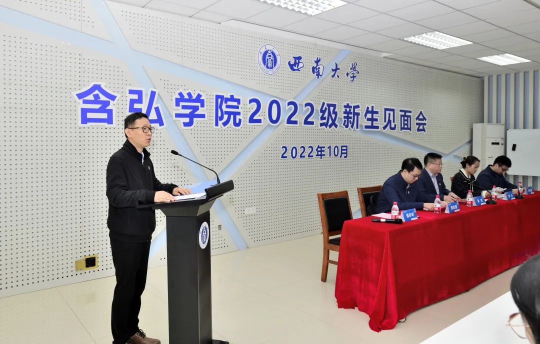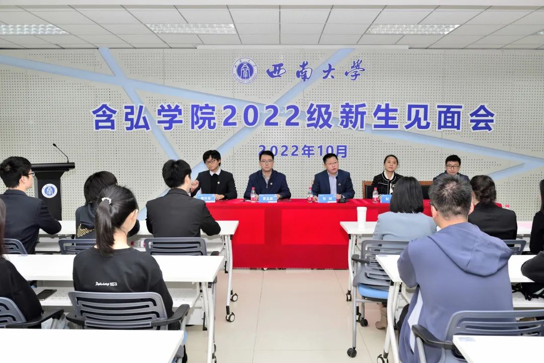 10月30日上午,含弘学院2022级新生见面会在老员工创新创业中心202报告厅举行。公司党委书记、经理张斌,党委副书记、副经理封云,2022级神农班新生学业导师、柑桔研究所曹孟籍研究员,2022级吴宓班新生学业导师、国家治理学院熊作军副教授,2022级袁隆平班新生学业导师、计算机与信息科学学院韩先锋,TapTap188改名(点点)学工办、教务办全体教师,院团委员工会和融媒体中心主要工作人员,全体2022级新生参加见面会。见面会由TapTap188改名(点点)团委书记兼学工办主任宇杰老师主持。