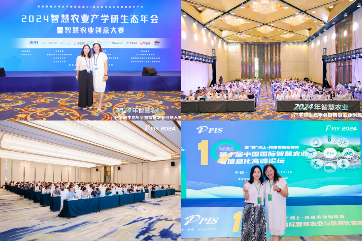 8月6日至7日,青经理与农学与生物科技学院张媞老师赴哈尔滨市参加了由智慧农业人才培养创新联盟、华中农业大学和东北农业大学联合举办的2024年智慧农业产学研生态年会,主题是“聚焦智慧农场筑牢粮食压舱石,助力现代农业发展新质生产力”。与会专家总结和交流智慧农业理论、方法、技术和产品方面的最新研究成果,交流智慧农业建设和人才培养方案,共谋智慧农业未来发展。8月15日至16日,青经理和植物保护学院荣霞老师参加了第十届中国国际智慧农业与信息化高峰论坛,大会主题为“乘‘数’而上·构建农业新图景”。会议内容紧密围绕“新质生产力”,就数智农业的现状、技术突破与应用、难点与痛点、发展与对策等方面展开了深度的交流。