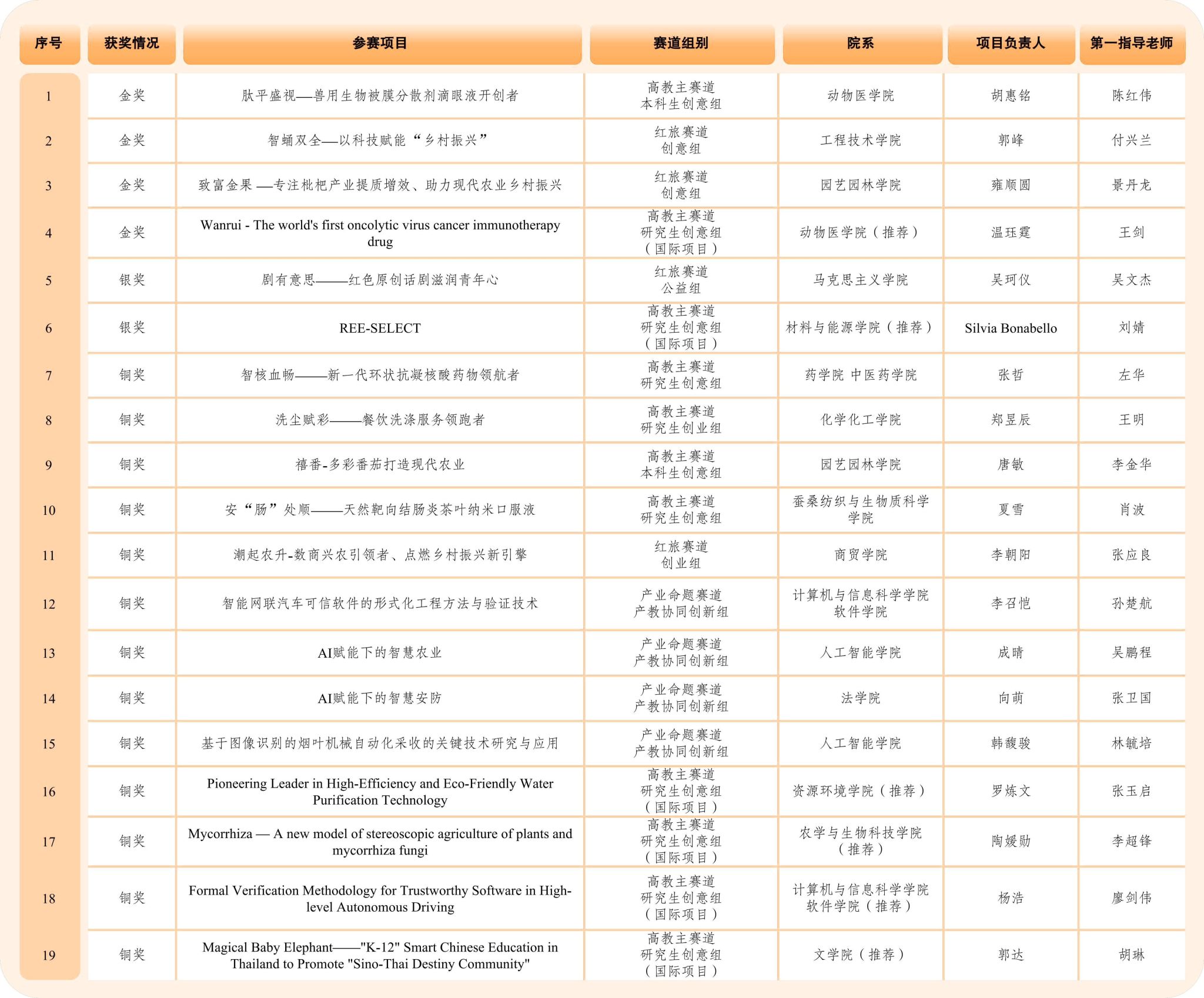 自2024年1月赛事备赛工作启动以来,学校高度重视,在学校员工就业创业工作领导小组统筹组织下,校领导多次指导备赛工作,TapTap188改名(点点)与相关职能部门通力合作制定备赛方案,开展线上线下专题宣讲、培训和辅导120余场,共有1881项创新创业项目、11086人次报名参赛,实现二级学院(部)参赛全覆盖。今年7月,学校在重庆赛区选拔赛中获得31金27银4铜的优异成绩,获金奖数量和获奖总数均位列重庆市第一,获评优秀组织奖。