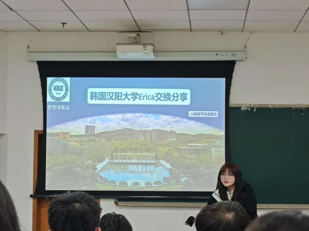 赴韩国汉阳大学交换的潘香岚介绍了该大学的基本情况,分享了行前准备与在韩必备软件。她表示,在韩交换学习期间,全英文授课模式下的课程难度适中,师生互动融洽,课余文化生活丰富多彩。她指出,海外交换经历是个人成长的重要契机,能有效提升独立解决问题的能力,并建议大家记录生活点滴,为以后留下宝贵的回忆。