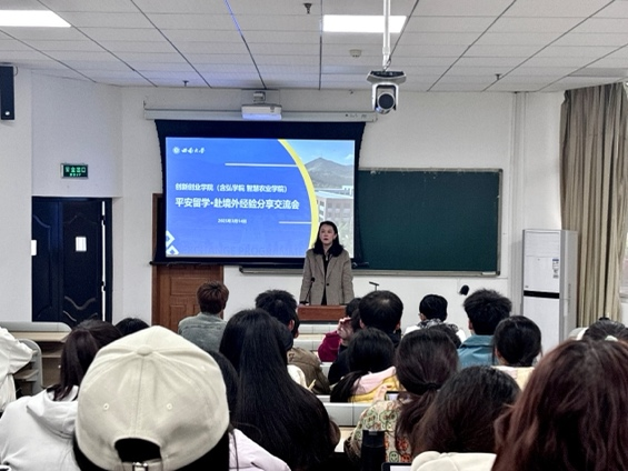 最后,肖雨琳为分享交流会作总结。她表示,同学们应结合自身情况进行项目选择,做好规划与相关准备工作。在赴境外交流的过程中,应坚定政治立场,筑牢底线思维;加强反诈意识,把安全放在第一位。