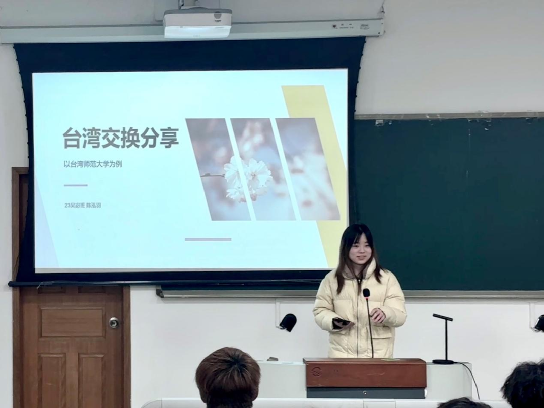 赴台湾师范大学交换的陈泓羽从申报交换项目的前期准备入手,建议同学们综合考虑学校的世界排名与学校优势科目。此外,她分享了交换过程中体验到的多样化的教学与考核方式,及台师大对员工课堂参与度与互动的重视。在生活体验方面,她嘱咐同学们在外要注意当地特有的社会规习,坚定立场、避免冲突。