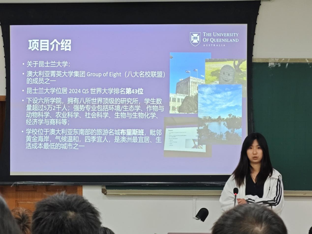 赴澳大利亚昆士兰大学暑期交换的陈彦如、贺煦然和高凌语将她们的交换经历分成学习与课余、衣食住行及费用三个部分进行介绍。她们指出,线上线下综合授课的模式和形式多样的校内workshop对于英语语言能力的提升有显著帮助,澳大利亚独特的自然景观值得亲身探索。