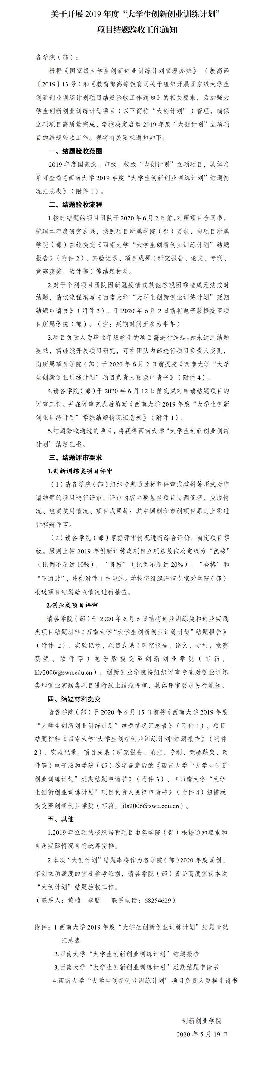 关于开展2019年度“老员工创新创业训练计划”项目结题验收工作的通知