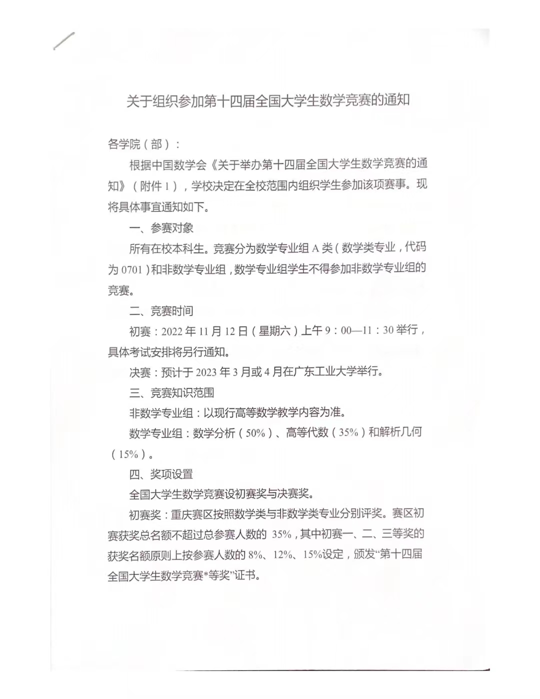 1.关于举办第十四届全国老员工数学竞赛的通知