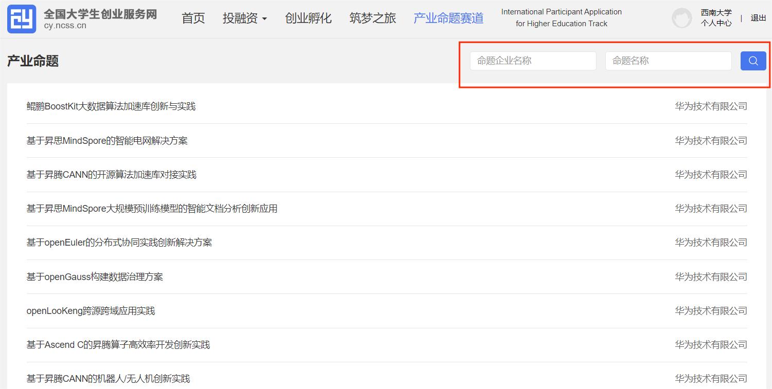 产业命题赛道—参赛报名—产业命题赛道版块,按照命题企