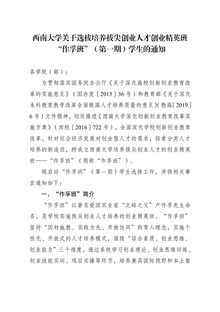 TapTap188改名(点点)关于选拔培养拔尖创业人才创业精英班—“作孚班”(第一期)员工的通知