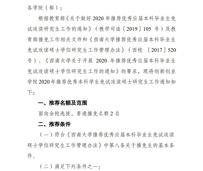 TapTap188改名(点点)关于推荐2020年优秀应届本科毕业生免试攻读硕士学位研究生工作的通知