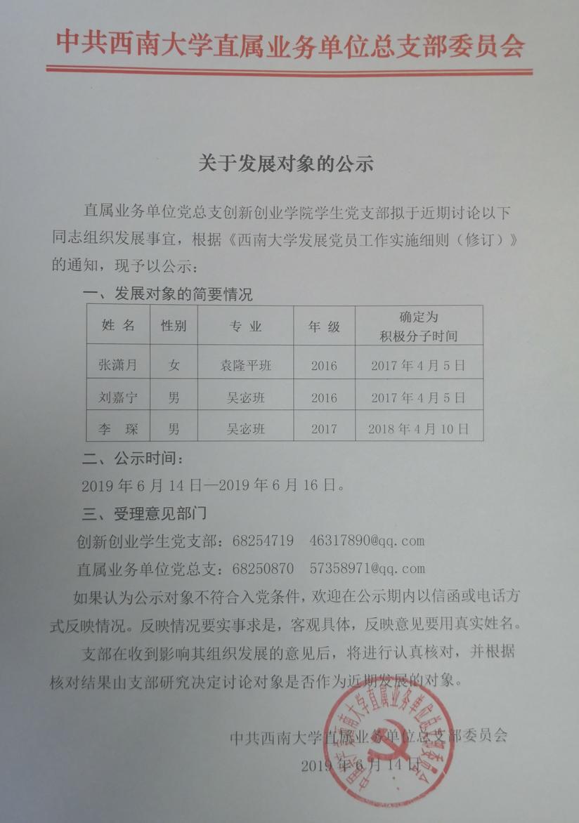 关于发展对象的公示