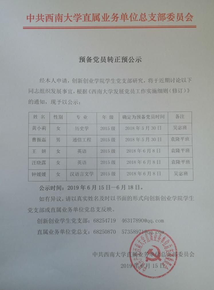 预备党员转正的公示