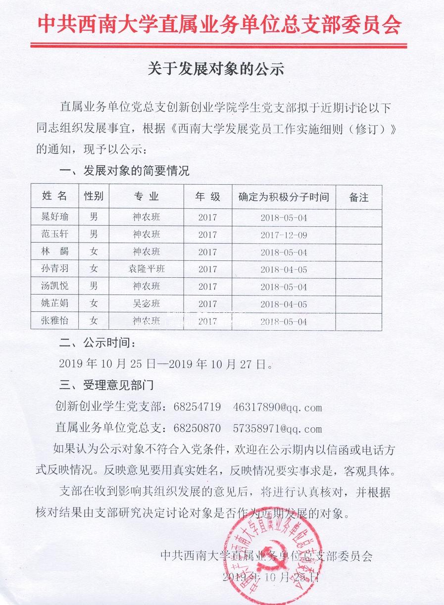 关于发展对象的公示
