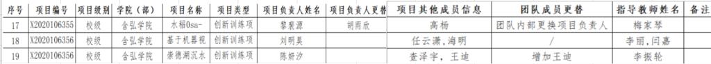 关于含弘学院老员工创新创业训练计划项目成员变更公示