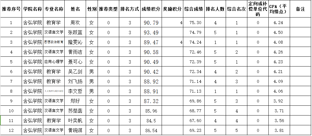含弘学院2024届推荐优秀应届本科毕业生 免试攻读硕士学位研究生排序公示(第二次)