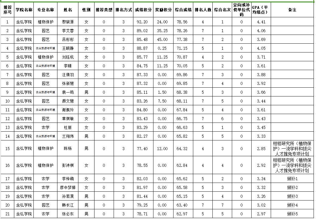 其中,“柑桔研究所(植物保护)一流学科和拔尖人才推免专项计划”名额,由接收单位确定接收专业,含弘学院按申请员工的综合积分专业排序确定拟推荐对象。
