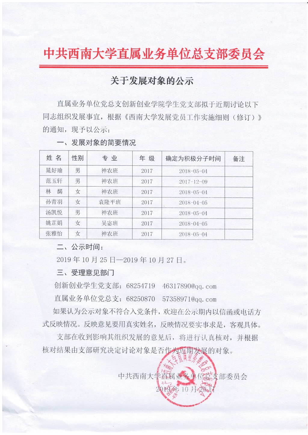 关于发展对象的公示
