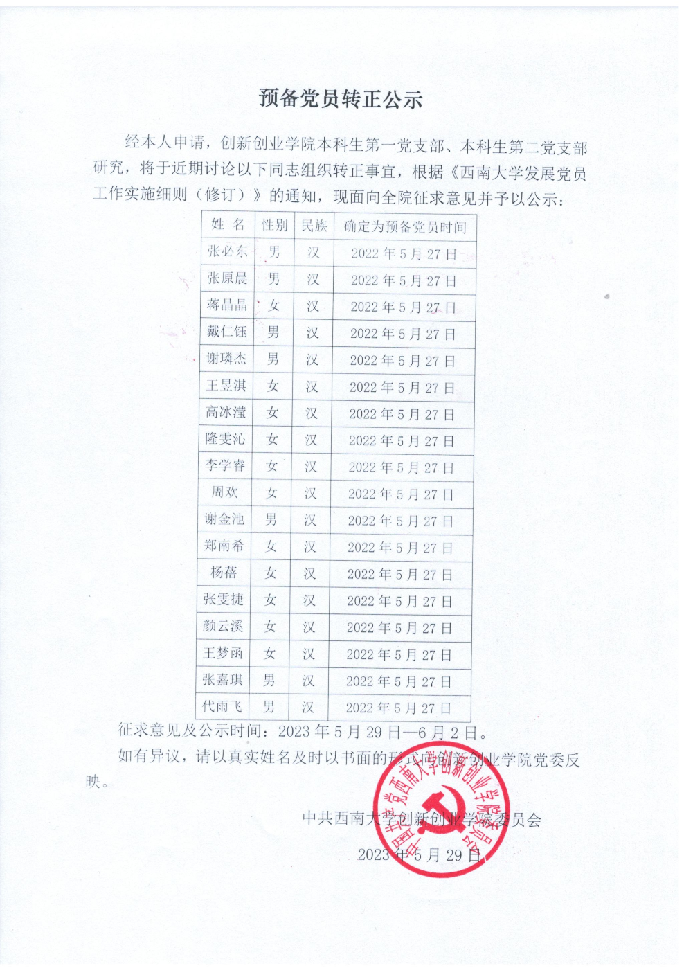 预备党员转正公示
