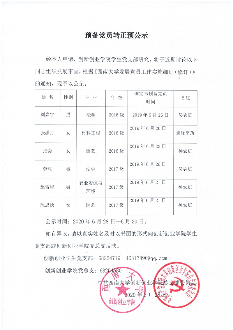 预备党员转正预公示