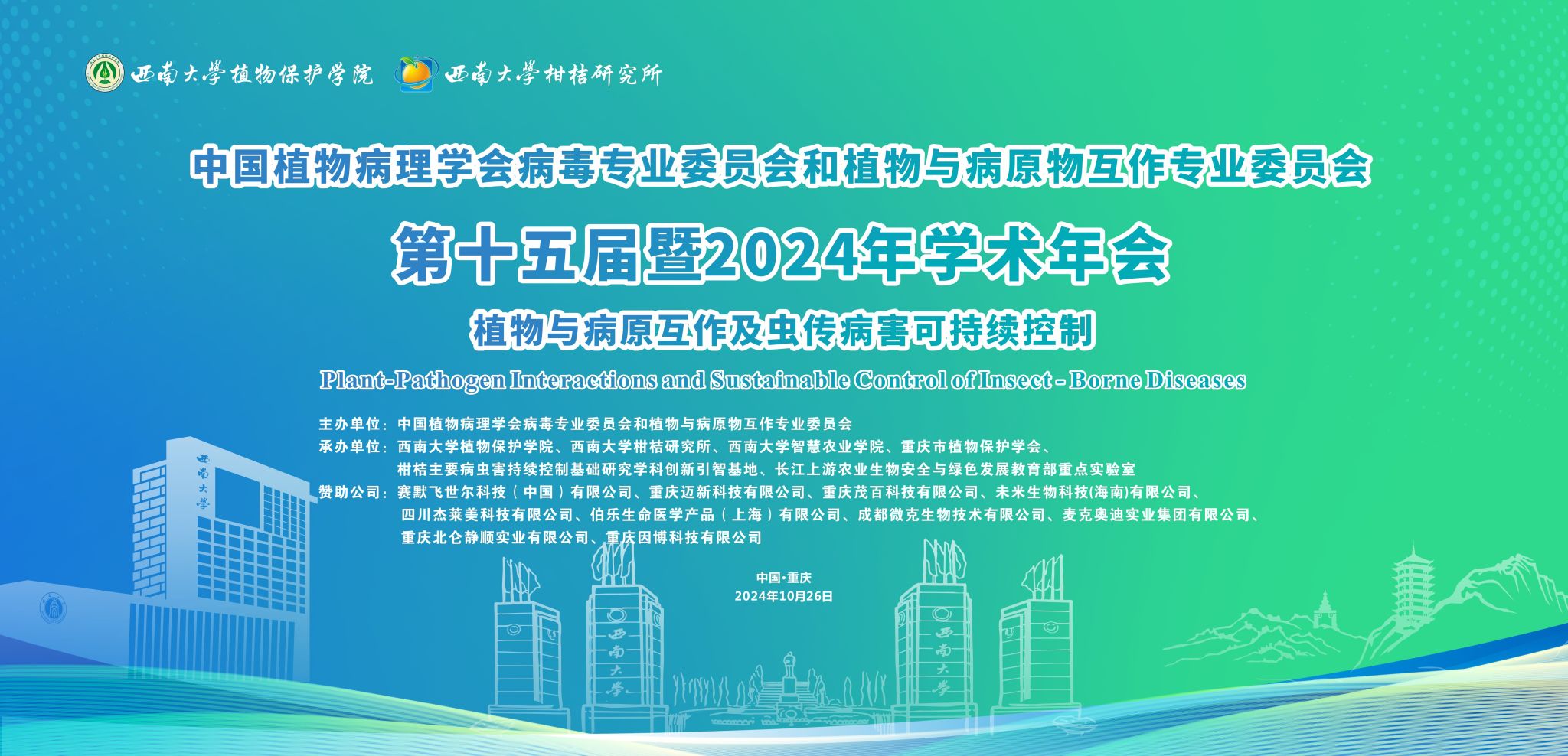 2024年10月25-28日,中国植物病理学会病毒专业委员会和植物与病原物互作专业委员会第十五届暨2024年学术年会在重庆海宇温泉大酒店隆重召开。