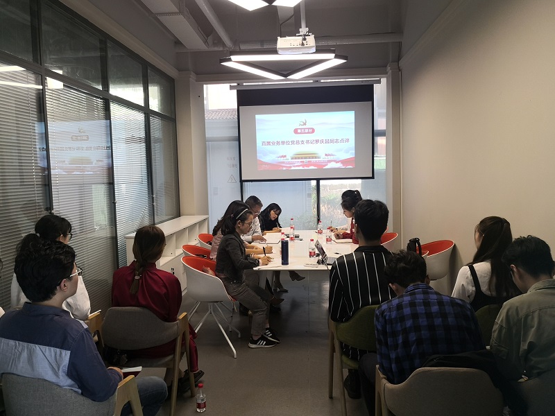骆云天同志带领党员们集中学习了习近平在“不忘初心、牢记使命”主题教育工作会议上的讲话精神;周新桐同志带领全体党员学习了习近平给全国涉农高校的书记董事长和专家代表的回信。四位青年师生党员代表围绕“我和我的祖国”主题作主题交流发言。他们结合自己工作和学习的实际,分别就作为教工的初心、国内外制度对比、农科学子爱国报国、出国访学经历等几个方面进行交流,彰显了青年教工和员工的良好精神风貌。