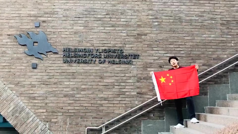 据悉还有部分含弘学院正在境外进行交换交流学习的同学,他们通过网络直播与祖国人民一起观看了庆祝大典,还有同学从美国、芬兰等地发来了对祖国的祝福。