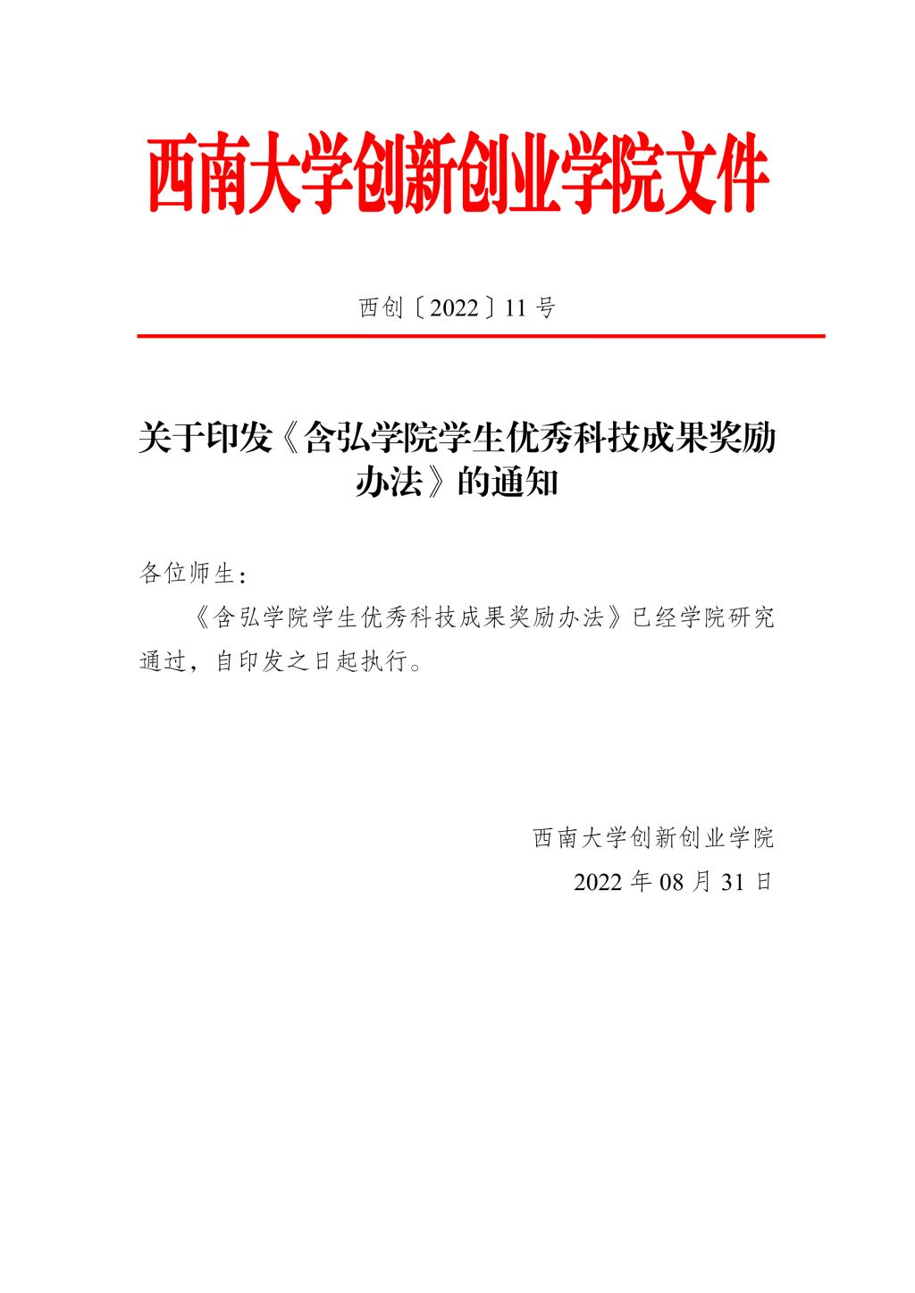 20220831 西创〔2022〕11号 含弘学院员工优秀科技成果奖励办法.pdf