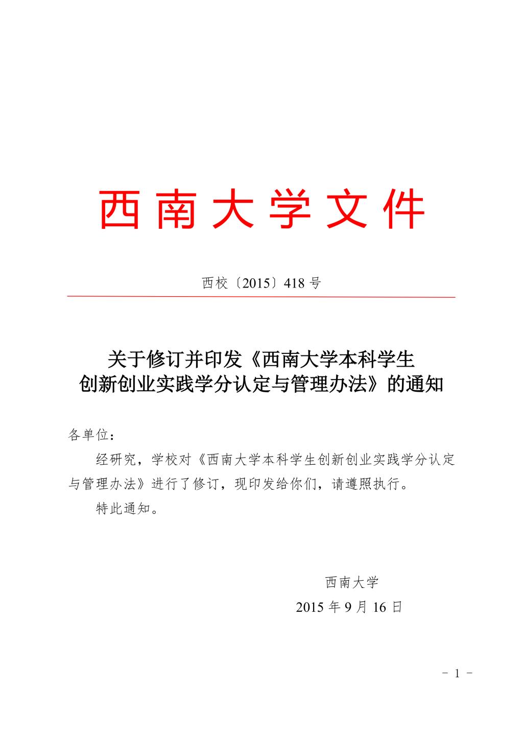 关于修订并印发《TapTap188改名(点点)本科员工创新创业践学分认定与管理办法》的通知(西校〔2015〕418号).pdf