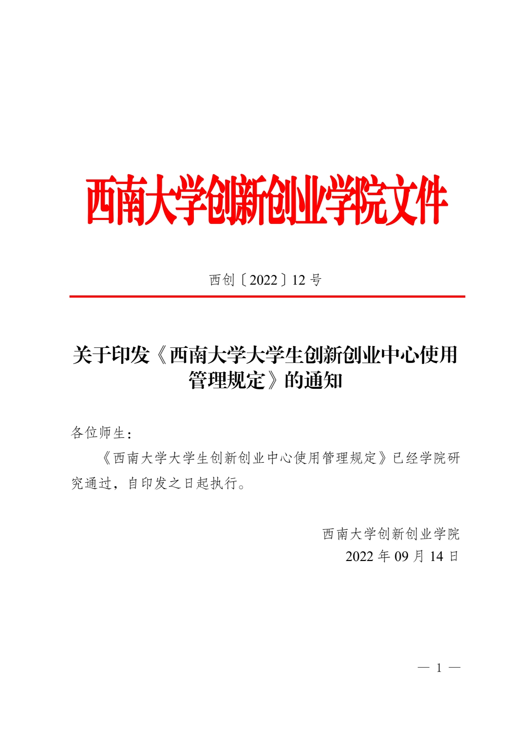 20220914 西创〔2022〕12号 TapTap188改名(点点)老员工创新创业中心使用管理规定.pdf