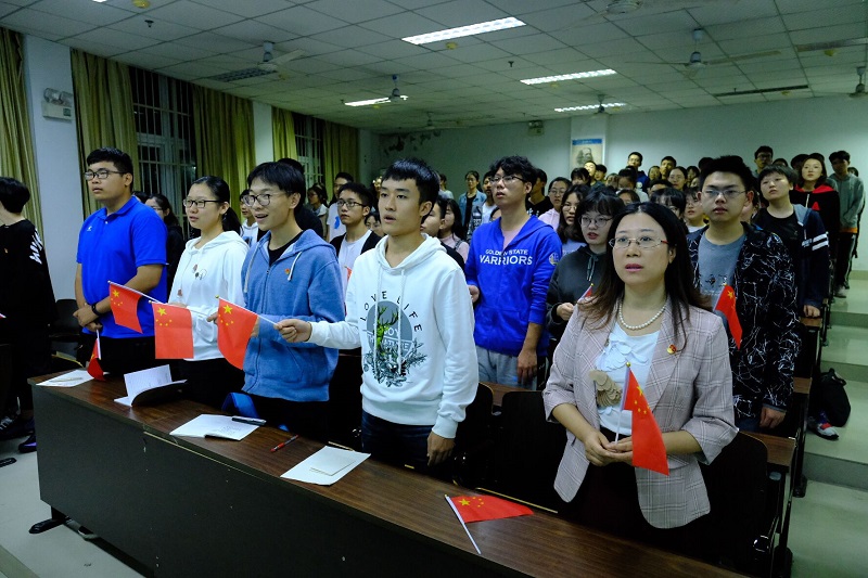 会议最后,全体同学在伴奏声中,齐唱《我和我的祖国》,再次点燃同学们爱国热情。本次党课在热烈的气氛中结束,《我和我的祖国》歌声在教室久久回荡!