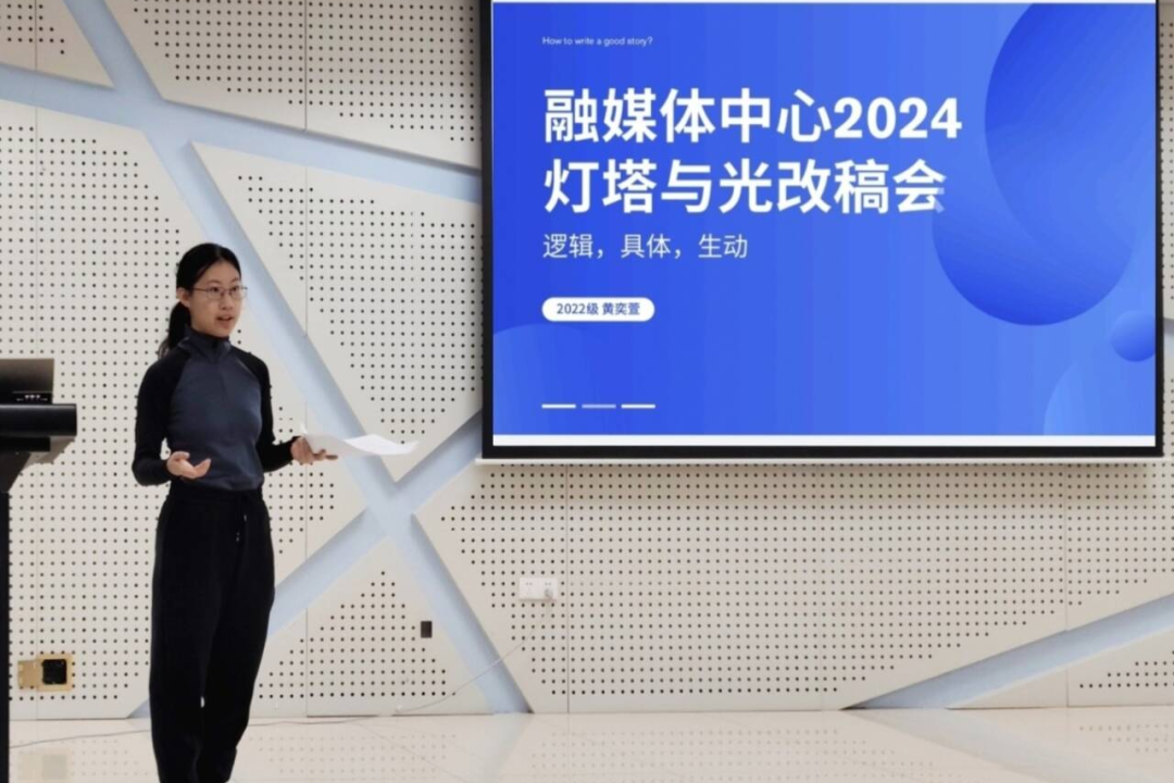 黄奕萱以“逻辑”“具体”“生动”为关键词,从采写流程、故事逻辑、好故事的标准、好文笔的特点四个维度,生动具体地向干事们阐述了一篇优秀人物访谈稿件应具备的核心要素。她通过回顾往期灯塔与光稿件,强调在撰稿过程中个性化观点传达、关键逻辑点提炼的重要性。