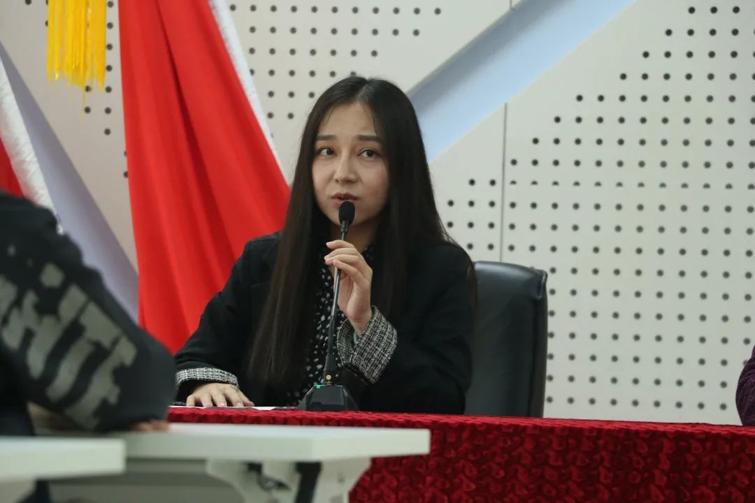 肖雨琳老师首先发表讲话,强调了大二学年目标制定和学业规划的重要性,提醒同学们要时刻保持谦逊,充分利用身边的学习资源,不断充实和提高自己。在专注学业的同时也要注重人文素养的提升,在学习生活中要尊重师长,与人友善相处。