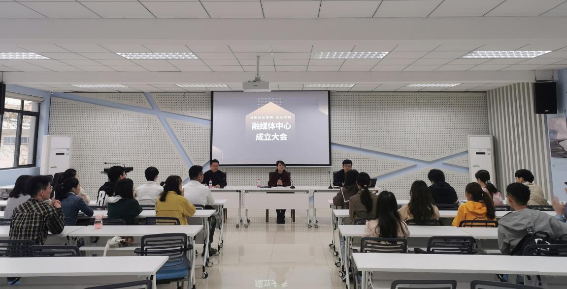 含弘学院团委书记宇杰介绍融媒体成立背景及中心情况。他提出在含弘学院成立十周年的关键节点,融媒体中心的成立,象征着新的机遇与挑战。融媒体中心现任主席吴彤表示融媒体中心成员将会团结一心,为了含弘学院思想文化的传播做出贡献。