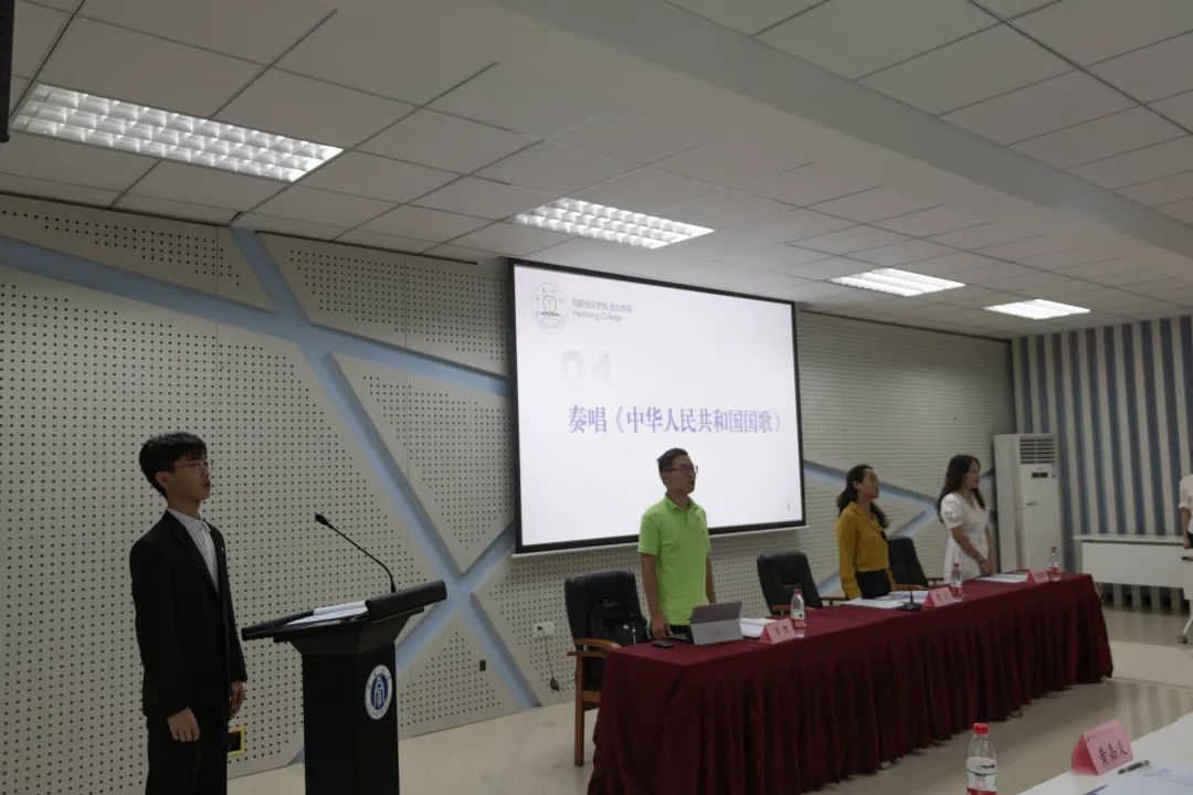 大会正式开始,全体奏唱《中华人民共和国国歌》,现场庄严肃穆。