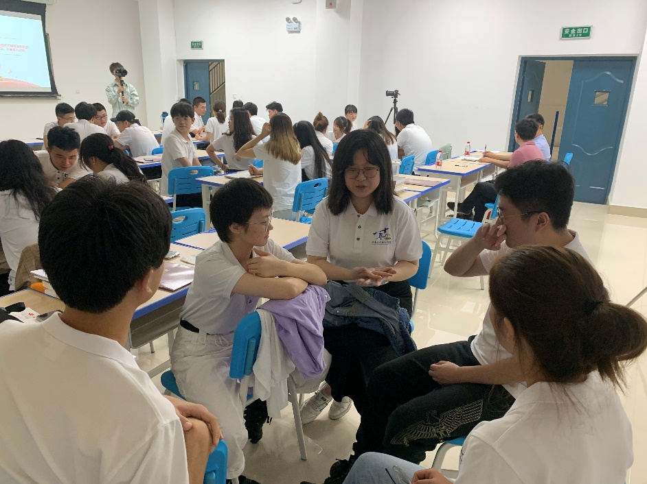 心中有力量,脚下有力量,对党忠诚,对祖国热爱。同学们就如何践行“请党放心,强国有我”的誓言开展了热烈讨论。