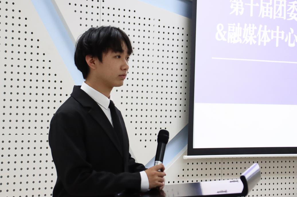 含弘学院融媒体中心主席隆雯沁介绍了融媒体中心的创立目的及其主要任务,详细阐述了融媒体中心的三大部门——综合办公室、新闻部和媒体部的各项职能,并为各部门以后的工作生活作出了具体规划。