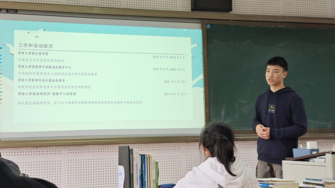 陈妍汐系统地向新生介绍了神农班本科四年的课程、科研、竞赛和活动等安排,并分享了自己对神农班培养方案的理解及自己的学习方法。