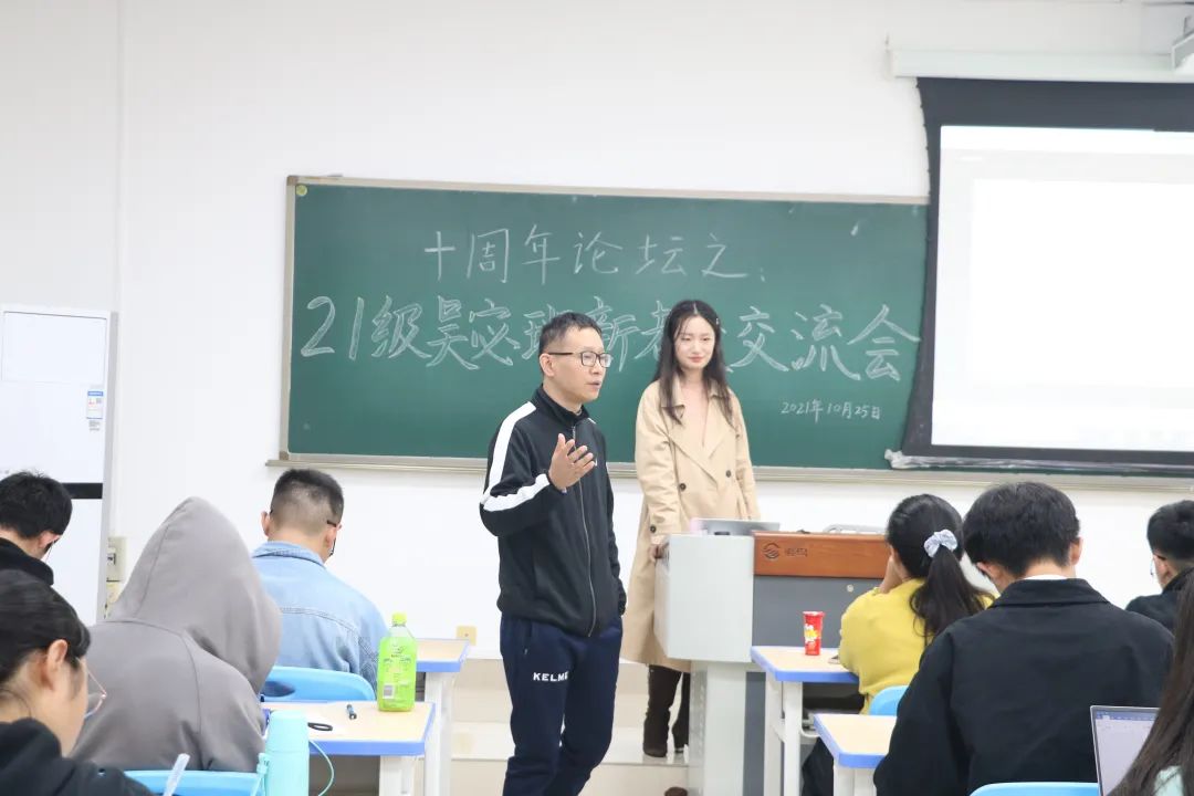 2021年10月25日晚上七点整,以“奋飞不辍,砥砺前行”为主题的含弘学院2021级吴宓班新老生交流会在26教110教室顺利展开。此次交流会旨在促进吴宓班新生适应老员工活、选择合适的学习道路,帮助新生们寻找并实现自身的价值。