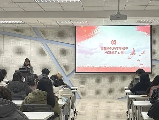 各年级团日活动分别邀请了公司党员、员工骨干进行学习心得分享,通过党学带团学,发挥党员的先模范作用,引领同学们深入思考,汲取精神力量。