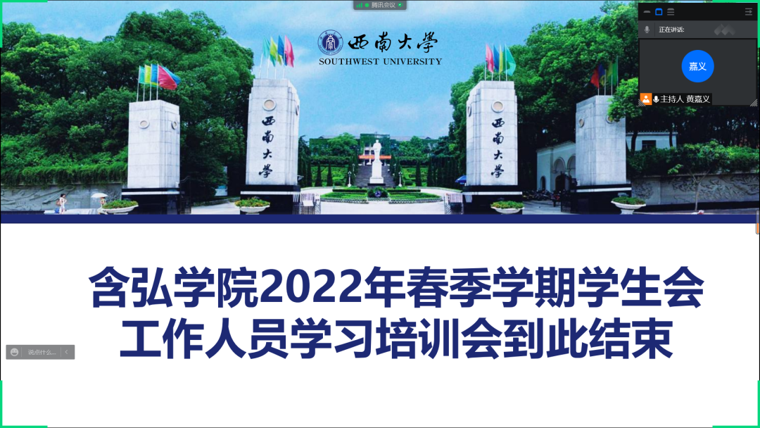 会议就防范化解涉团学领域风险、党的青年运动史的学习、“我为同学做件事”活动分享三个内容对员工会工作人员进行了专题培训。会议由含弘学院员工会主席团成员黄嘉义同学主持。