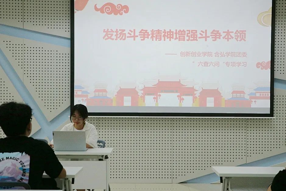组织部邓润卿同学强调了斗争精神的重要性,发扬斗争精神要注重策略方法,讲究斗争艺术。介绍了当今世界背景与要求,处于当今百年未有之大变局,必须增强“四个意识”,坚定“四个自信”,做到“两个维护”,敢于出击,敢战敢胜。