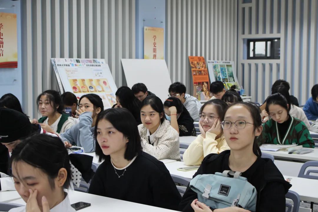 接着,2021级吴宓班姜美婷同学作为四川德阳“拾遗薪火”校级实践小分队队长与大家进行了分享与交流。该小分队在德阳深入研究探讨了年画村合理高效的乡村文化振兴建设模式,重点围绕传统非遗民俗文化赋能乡村振兴进行了考察,并针对当前我国乡村发展存在的问题思考了如何因地制宜创新性地开展乡村文化振兴。