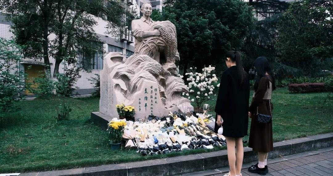 花飨逝者,春暖斯人。含弘学子伴着暮春的绿意与微风来到吴宓先生雕像前追思先贤遗风。