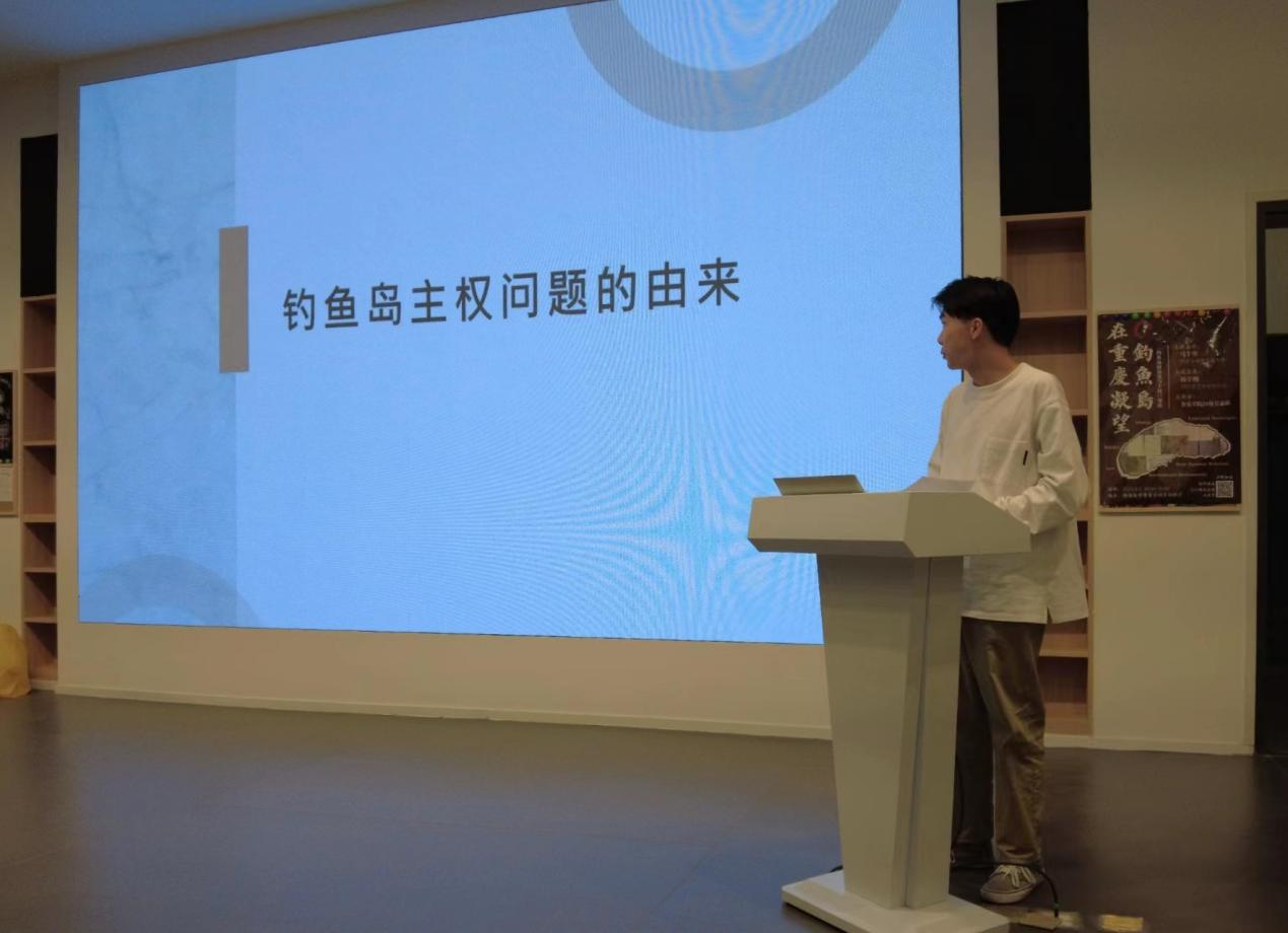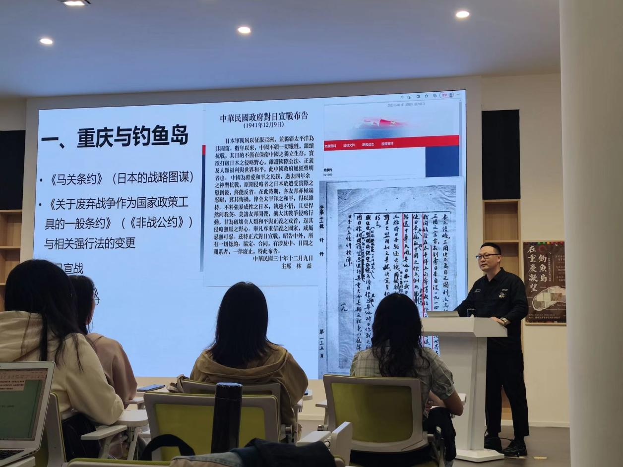 首先,马千里老师借助专业的国际法视角带领大家展开了一系列文本解读。他通过对比1895年《马关条约》中日本对侵略领土的不同表述方式——详细标注澎湖列岛的经纬度范围,对台湾全岛及其附属岛屿却没有相关标注,剖析了日本企图窃据钓鱼岛的战略图谋。其次,他向大家介绍了1929年生效的《关于废弃战争作为国家政策工具的一般条约》,其第一次否定了以战争方式解决国际争端的合法性,阐明了《马关条约》与这一新的强行法相抵触,因此是非法无效的。紧接着,他向我们展示了同时在中国战时首都重庆、美国首都华盛顿和英国首都伦敦同时发表的《开罗宣言》的原文“在使日本所窃取于中国之领土,例如东北四省、台湾、澎湖群岛等,归还中华民国”,结合1949年中华人民共和国政府取代中华民国政府是政府继承而非国家继承的国际法常识,指出中华人民共和国政府是代表全中国的唯一合法政府。以时间为轴,以国际官方文件为依据,马千里老师从学理上向大家说明了中国对钓鱼岛及其附属岛屿拥有无可争辩的主权。